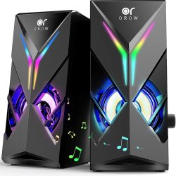 OROW 10W RGB Computer Speakers with Volume Control, Colorful LED Gaming Speakers for PC/Desktop/Laptop/Monitor, 3.5mm Aux Input, Lights On/Off Option (S201)