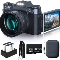 Digital Camera for Photography VJIANGER 4K 48MP Vlogging Camera for YouTube with WiFi, 16X Digital Zoom, 52mm Wide Angle & Macro Lens, 2 Batteries, 32GB TF Card, Camera Strap & Bag(Black)