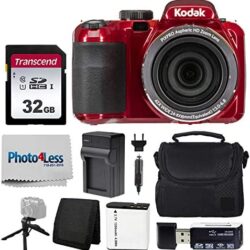 PHOTO4LESS Kodak PIXPRO AZ421 Digital Camera (Red) + Point & Shoot Camera Case + Transcend 32GB SD Memory Card + Extra Battery & Charger + USB Card Reader + Table Tripod + Accessories