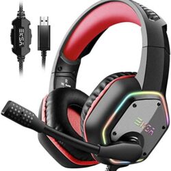 EKSA Gaming Headset with 7.1 Surround Sound Stereo, PS4 USB Headphones with Noise Canceling Mic & RGB Light, Compatible with PC, PS4 Console, Laptop (Red)