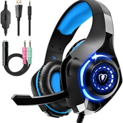 BENGOO G9000 Stereo Gaming Headset for PS4 PC Xbox One PS5 Controller, Noise Cancelling Over Ear Headphones with Mic, LED Light, Bass Surround, Soft Memory Earmuffs for Laptop Mac Nintendo NES Games