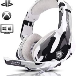 Gaming Headset for PS4, Xbox One, PC, Laptop, Mac, Nintendo Switch, PHOINIKAS 3.5MM PS4 Headset with Mic, Over Ear Headset, Noise-Cancelling Headset, Bass Surround, LED Light, Comfort Earmuff – Camo