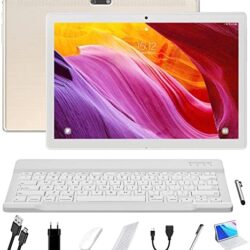 Android Tablet 10 Inch, 4GB RAM 64GB Storage, Android 10.0, Octa-Core Processor, Tablet with Keyboard, Large Battery, Dual Camera, Wi-Fi, Bluetooth, GPS, Mouse,Tablet Cover,LNMBBS Tablet,Gold